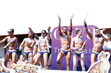 穿著清涼的勐男美女引得沿路觀眾尖叫不已。