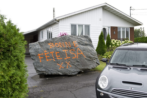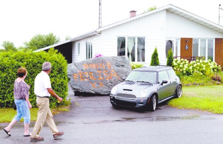 加拿大人非??粗剡^生日,生日禮物不僅很重要,而且五花八門,但魁省一個小鎮(zhèn)鎮(zhèn)長別出心裁,他親自駕車給離婚10年的前妻送上重達20噸的巨石作為特別生日禮物,不過可能惹上官非。他將1塊20噸重巨石丟在她的前院草坪上﹐然后駕車揚長而去。省警可能控告他刑事罪名。