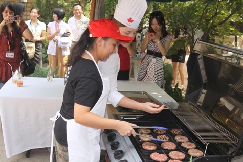 之后,大使又帶大家參觀了使館俱樂部,介紹加拿大的冰球傳統(tǒng)。緊接著,大家來(lái)到貿(mào)易處,貿(mào)易處的官員們?yōu)榇蠹易隽?a href='http://bekor.cn' target='_blank'>留學(xué)加拿大及加拿大旅游勝地的介紹,展示非常精彩,以至于在場(chǎng)的加拿大人都產(chǎn)生了立刻回家的沖動(dòng)。講解使大家無(wú)比振奮,但大使也不會(huì)虧待了大家的肚子。