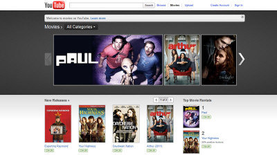 谷歌提供的租賃電影包括一些新上市的影片:Arthur、Battle of Los Angeles、The Adjustment of Bureau、Just Go With It。