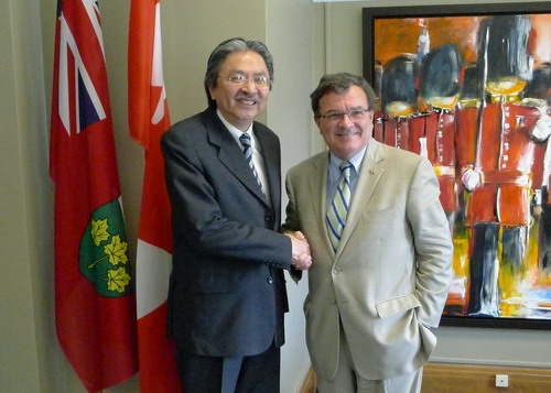 加拿大聯(lián)邦財(cái)長(zhǎng)費(fèi)拉逖(右)歡迎香港財(cái)政司司長(zhǎng)曾俊華到訪渥太華。