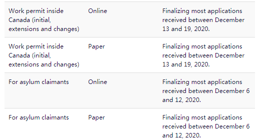 如果申請者是在加拿大境內提交的,無論通過線上或紙質的申請,IRCC都已經處理到去年12月中旬的案件。
